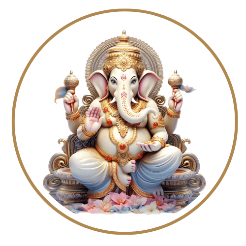 Includes Sanskrit Mantras: “ॐ गं गणपतये नमः” and “वक्रतुंड महाकाय...” printed clearly.