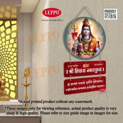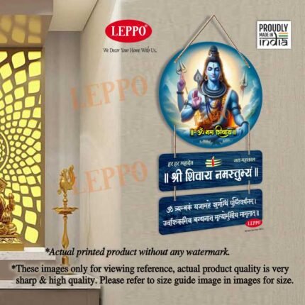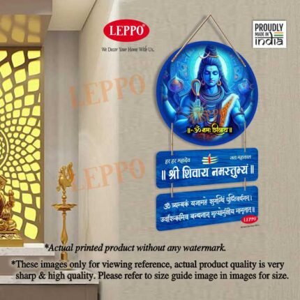 LEPPO Wooden Wall Hanging bring divine blessings into your home with this beautifully crafted Lord Shiva Wall Hanging. Featuring the 12 sacred Jyotirlingas, the powerful “Shri Shivaya Namastubhyam” chant, and the Maha Mrityunjaya Mantra, this spiritual decor piece creates a peaceful and devotional atmosphere in any space.