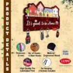 LEPPO Home Keys Wooden Key Holder (23 cm x 15 cm x 0.4 cm) Dl315 I 6 Hooks I Wall Decoration Item for Home Decor