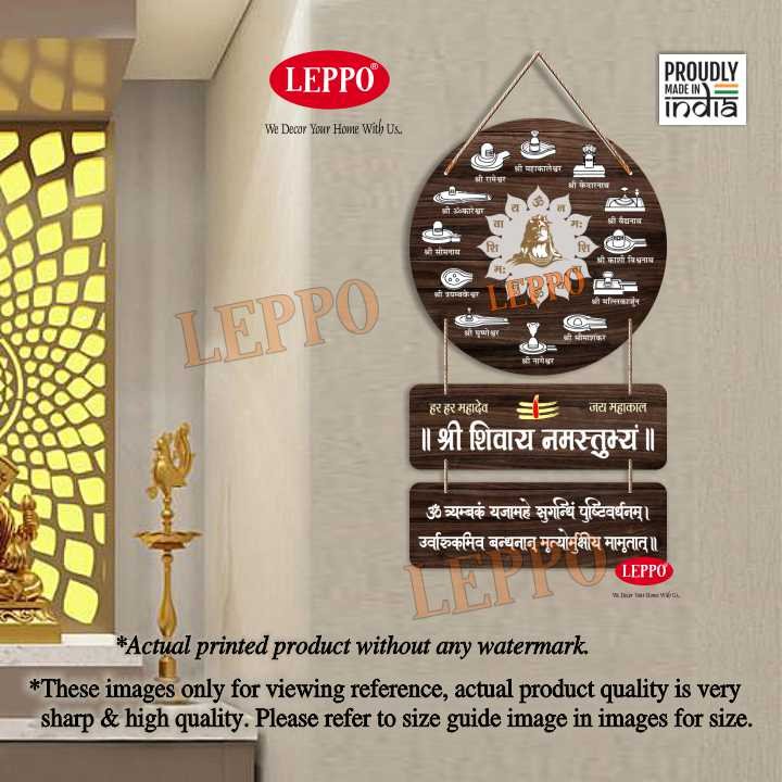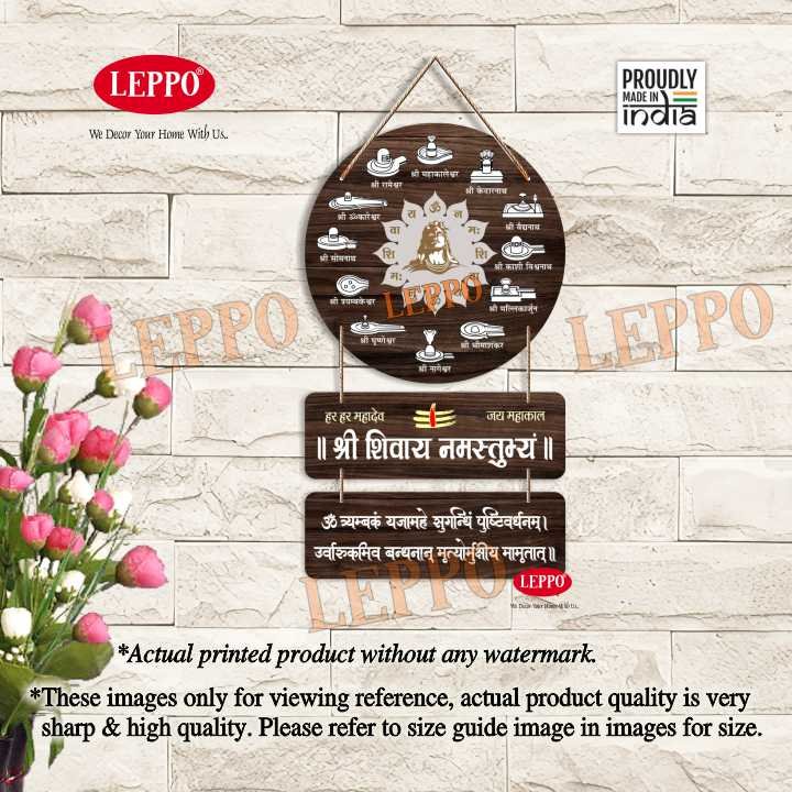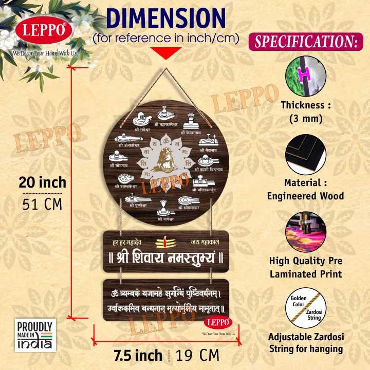 LEPPO Wooden Wall Hanging bring divine blessings into your home with this beautifully crafted Lord Shiva Wall Hanging. Featuring the 12 sacred Jyotirlingas, the powerful “Shri Shivaya Namastubhyam” chant, and the Maha Mrityunjaya Mantra, this spiritual decor piece creates a peaceful and devotional atmosphere in any space.