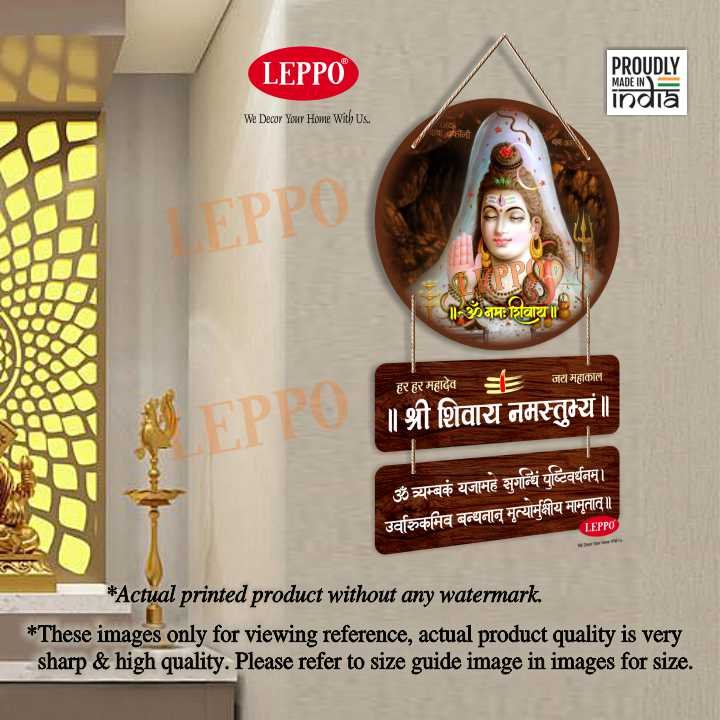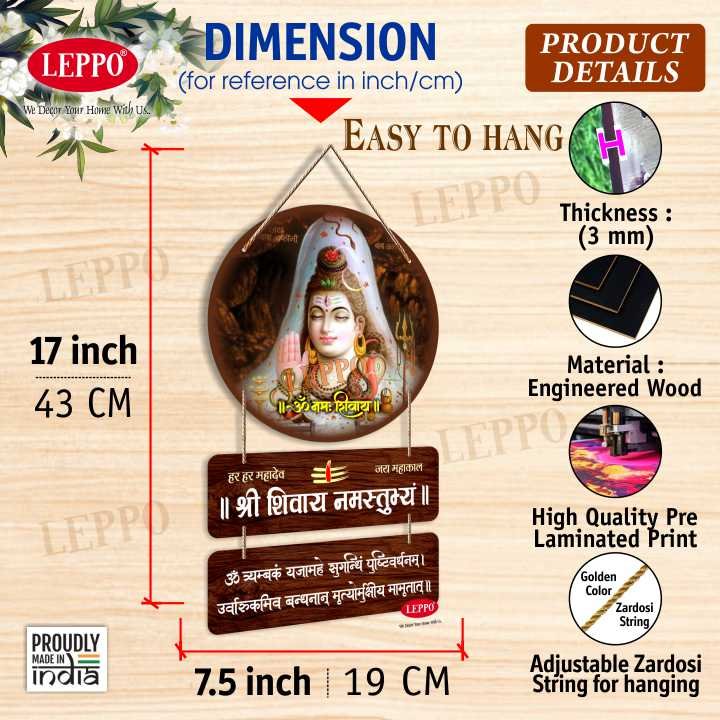 LEPPO Wooden Wall Hanging bring divine blessings into your home with this beautifully crafted Lord Shiva Wall Hanging. Featuring the 12 sacred Jyotirlingas, the powerful “Shri Shivaya Namastubhyam” chant, and the Maha Mrityunjaya Mantra, this spiritual decor piece creates a peaceful and devotional atmosphere in any space.