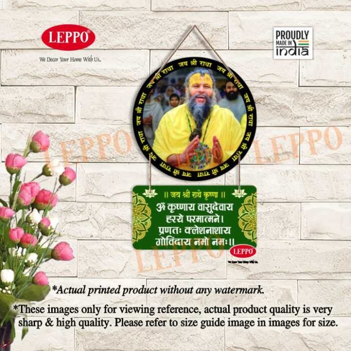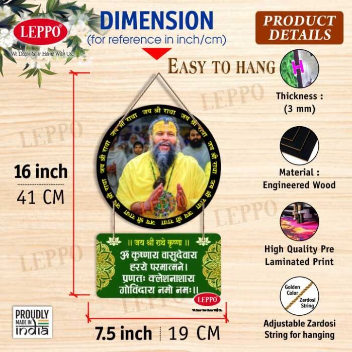 LEPPO Woodan Wall Hanging bring home the divine presence of Premanand Ji Maharaj, the revered spiritual guide known for his soulful kirtans, bhajans, and discourses rooted in the deep love of Shri Radha-Krishna Ji. This exquisite wall decor is more than just a decorative item – it’s a source of peace, devotion, and positive vibrations for your home, temple room, or office or places of decor.