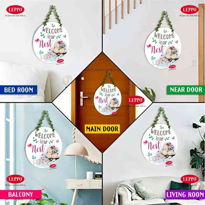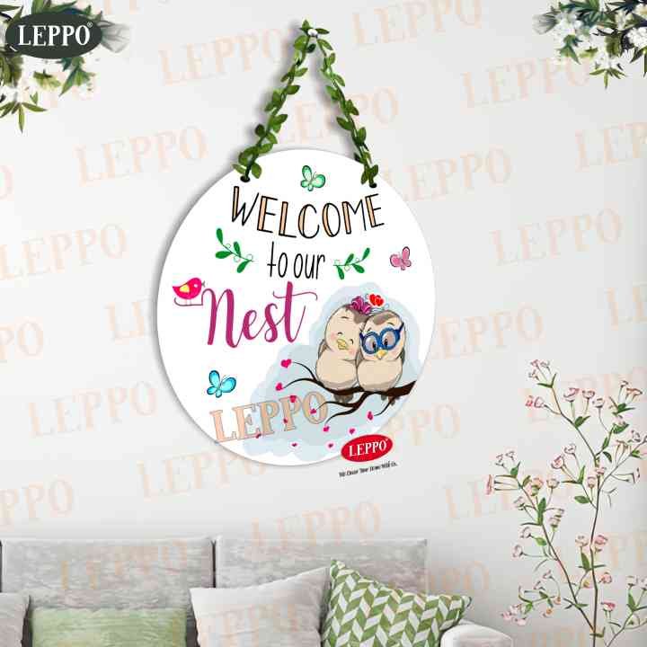 “LEPPO” Bring warmth and charm to your home with this “Welcome to Our Nest” Decorative Wall Hanging featuring a cute owl couple design. Perfect for home entrance, living room, bedroom, or balcony, housewarming, anniversary, wedding, or festive gift. This wall décor adds a cozy and welcoming vibe to your space.