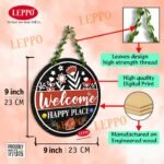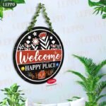 LEPPO “Welcome to Our Home” Wooden Wall Hanging Board. Crafted with elegant floral design and a natural wood finish, this sign adds a welcoming touch to your entrance, balcony, or living space. The artificial leaf chain gives it a natural, green look that enhances any wall decor.